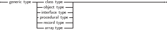 For classes, objects, procedural types and extended records, the generic type declaration should be